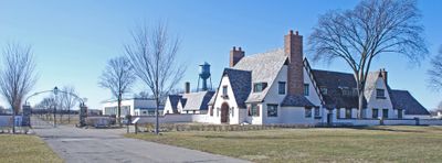 The grounds contain the original airplane hangar, repair garage, and residential lodge where staff members lived during the facility's operational years.