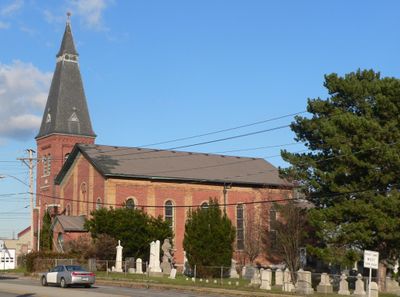 The church complex includes a cemetery dating from 1823 to 1900, documenting the lives of early Catholic settlers in the Monroe County area.