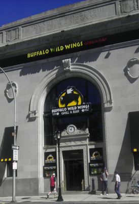 The nine-story commercial structure features limestone and brick construction with terra cotta ornaments at street level and an L-shaped architectural plan.