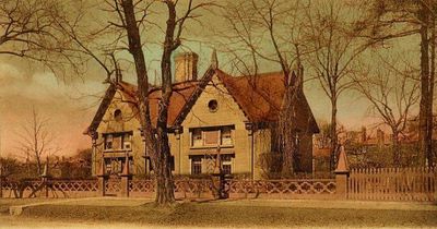 The house transformed from a simple two-room farmhouse into an expanded residence incorporating Gothic Revival elements, including roof finials and round gable windows.