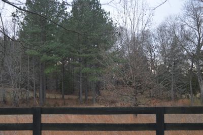 Pine Knot consists of a two-story wooden frame structure with a deep front porch, surrounded by oak, cedar, dogwood, maple, and cherry trees.