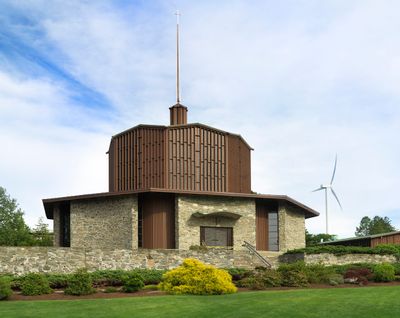 The Portsmouth Abbey complex includes a chapel, gardens, farmland, and woodlands spread across the grounds near Narragansett Bay.