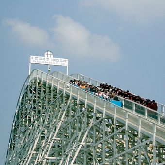 Racer 75 is a twin-track wooden roller coaster located at Kings Dominion amusement park in Virginia. The structure covers a length of approximately 3,368 feet and reaches a maximum height of around 85 feet above ground level.