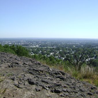 The park's position on Garret Mountain's ridgeline reveals basalt cliffs along its eastern edge and provides views over the Great Notch Reservoir.