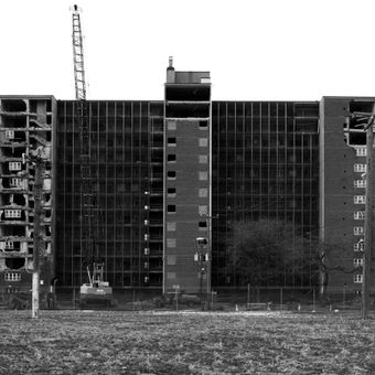 Rockwell Gardens was a residential complex in East Garfield Park with eight apartment buildings between 10 and 13 stories tall, containing 1,126 units across 17 acres. The development sat between Madison Street, Van Buren Street, Western Avenue, and Rockwell Street.