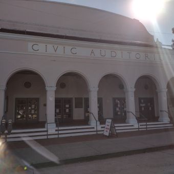 Santa Cruz Civic Auditorium, Mission-style performance venue in downtown Santa Cruz, California.