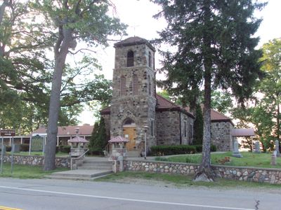 The church property, located at 8742 U.S. Route 12 in the Irish Hills region, maintains an active Catholic congregation and includes a cemetery from the 1850s.