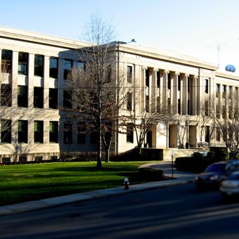 Schenley High School is a high school building in Pennsylvania designed to house classrooms, administrative offices, and educational facilities across multiple floors. The structure features classical architectural details that characterize both its exterior facade and interior spaces.