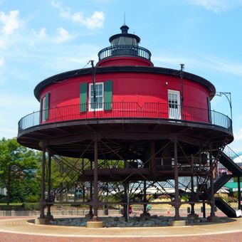 Built in 1856, this screwpile lighthouse marked the entrance to the Patapsco River and Chesapeake Bay until its relocation to Pier 5 in Baltimore in 1988.