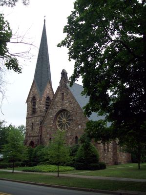The church building combines traditional English church design principles with local Pennsylvania construction materials and techniques.
