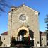 The church features a grand portico entrance, bronze relief doors, and a prominent round window on its south facade inspired by San Zeno Maggiore.