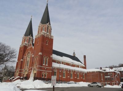 The parish began in 1854 when Catholic residents gathered for Mass in the Paper Mill Company house before moving to Skinner Hall above Market Street.