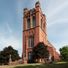 The building features red brick walls with red-sandstone trim, incorporating a square-plan tower positioned at the front of the structure.