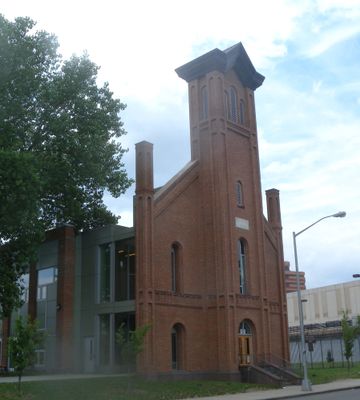The church cornerstone was laid in 1856 under Reverend Anthony Farley's direction, with master mason Anders Peterson leading the construction for 25,000 dollars.