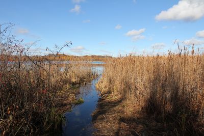 Spruce Lake Bog is a wetland in Fond du Lac County that spans about 140 acres within Kettle Moraine State Forest. The landscape consists of sphagnum moss, specialized plant communities, and supports numerous bird species in its boggy environment.