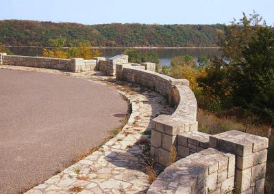 The National Youth Administration constructed the overlook between 1936 and 1937 using stone materials salvaged from the former Minnesota Territorial Prison.