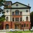 The Sterling Opera House features Italianate Victorian architecture with sweeping balconies, bottle glass windows, keystone arches, and wrought iron decorations throughout the building.