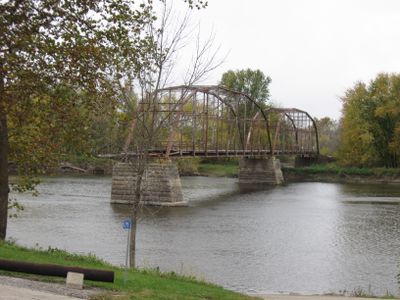The structure represents an early example of wagon truss bridge engineering, with restoration costs reaching 1.7 million dollars after the 2008 flood damage.