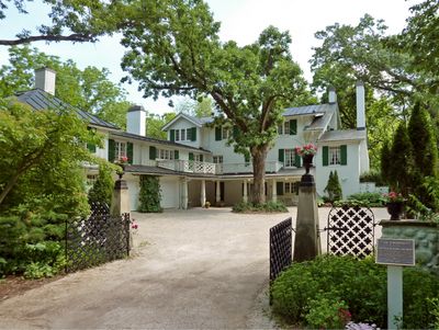 Ten Chimneys features a main house, guest cottages, and workshops spread across gardens and natural landscapes in the Wisconsin countryside.