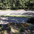 The theater features a natural amphitheater formed by hillside slopes on both sides of a creek, surrounded by mature oak trees.