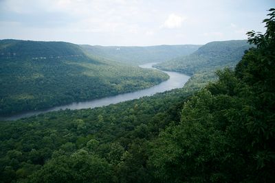 The Tennessee River Blueway extends 50 miles between Chickamauga Dam and Nickajack Dam, featuring multiple access points for water activities and riverside camping.