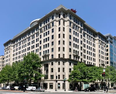 The Investment Building rises 13 floors high at 1501 K Street NW, featuring a contemporary design with glass and steel elements in Washington D.C.