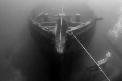 The sanctuary protects the sailing ship Ironton, which rests upright with three masts standing in the cold freshwater at the bottom of Lake Huron.