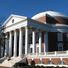 The Rotunda is a classical library building on The Lawn campus of the University of Virginia in Albemarle County. The round brick structure supports a large dome, white columns, and displays balanced proportions modeled after the Roman Pantheon.