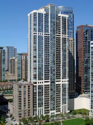 The building provides residential services and amenities across its 46 floors, with direct access to Chicago's public transportation system.