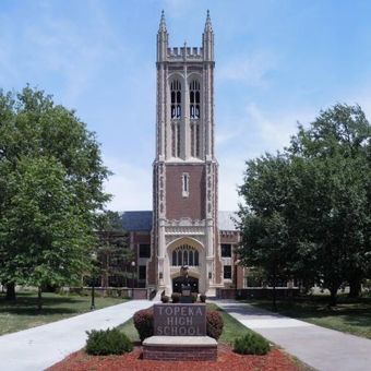 Topeka High School is a three-story brick building in the Collegiate Gothic style located in Topeka, Kansas. The structure features an ornate bell tower and a library designed after Hampton Court Palace.