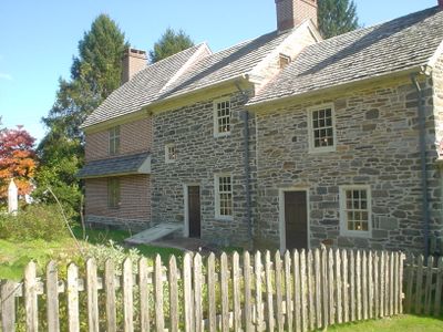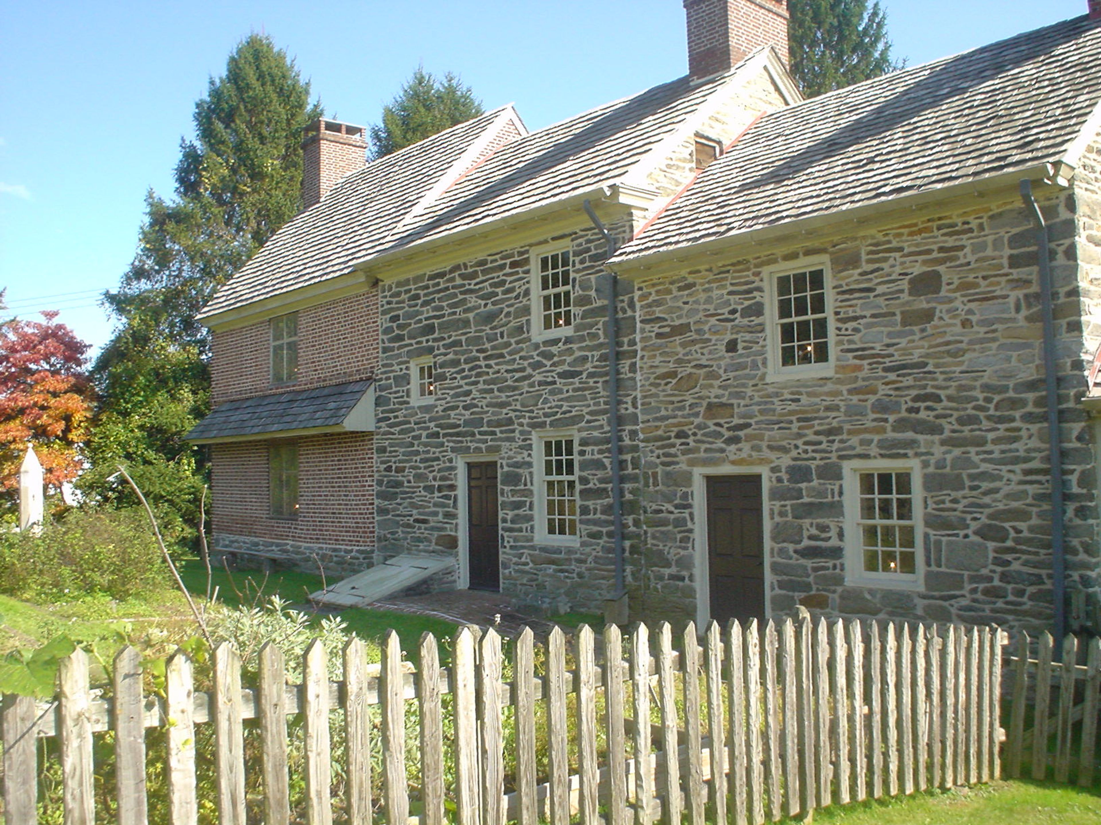 The residence represents early English Quaker settlements in Pennsylvania, with its preserved walk-in fireplace and beehive oven demonstrating colonial domestic life.