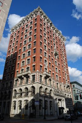 Located at the intersection of Westminster and Dorrance Streets, the building now contains business spaces on lower floors and residential apartments above.
