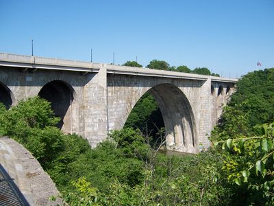 Standing 190 feet tall and 106 feet wide, this concrete arch bridge remains the longest spanning structure in Rochester.