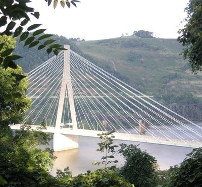 This cable-stayed structure spans the Ohio River to connect Steubenville, Ohio with Weirton, West Virginia, carrying US Route 22 across the waterway. The roadway accommodates heavy daily traffic flowing between the two states and their surrounding regions.