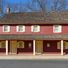 The Village Inn is located at the corner of Main and Water Streets in Englishtown and was built in 1732. The structure displays different architectural styles spanning over two centuries, with original colonial-era wood framing visible alongside later 1800s expansions that created a more balanced exterior form.