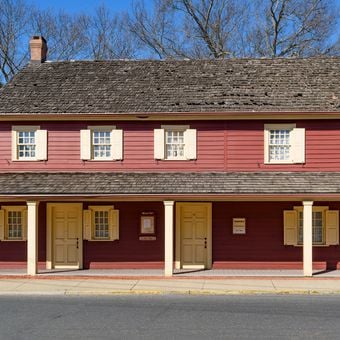 The building sits at a quiet corner in central Englishtown and is easily accessible on foot. The property is maintained by the Battleground Historical Society, which offers regular tours allowing visitors to explore the original preserved rooms and experience the site's story.