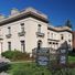 The Eugene Merrill House, built in 1884, features Richardsonian Romanesque architecture with red sandstone walls and a distinctive polygonal tower.