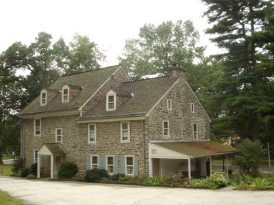 The basement contains visible sections of original 1682 stonework, providing direct evidence of colonial-era construction methods in Pennsylvania.