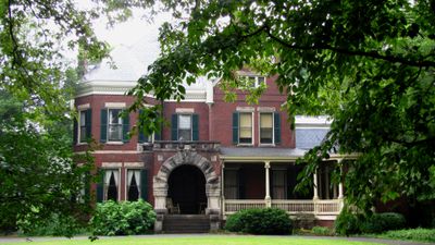 The Baumann Brothers constructed this residence in 1890 for John Lutz and his wife Adelia Armstrong Lutz, who maintained ownership through four generations until 2009.
