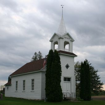 Constructed in 1863 by settlers from Hopedale, Pennsylvania, the church underwent modifications in 1908 when its steeple was relocated to create the bell tower.
