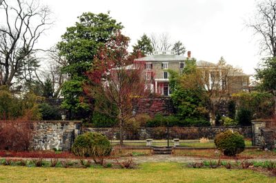 The Gibraltar estate features decorative details, symmetrical design elements, and a commanding position atop a rocky elevation at 2505 Pennsylvania Avenue.