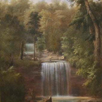 Minneopa State Park is a state park in Minnesota featuring a double waterfall that drops into a sandstone gorge through prairie terrain. The 1,400-acre property splits into two sections, with natural features spread across grasslands and wooded areas accessible by vehicle.