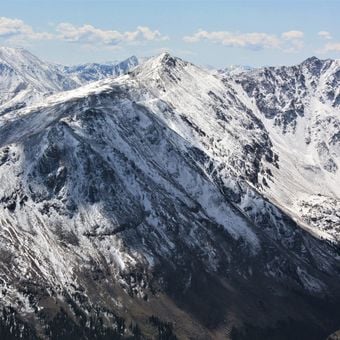 French Mountain rises to an elevation of 13,966 feet with a prominence of 1,100 feet in the San Isabel National Forest near Leadville.