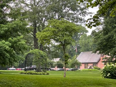 The property includes specialized gardens with Indiana native plants, creating outdoor spaces for both governmental functions and public educational programs point.
