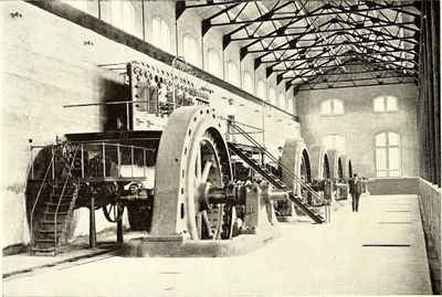 The hydroelectric plant operates at 40 Hertz frequency, maintaining its original operating specifications from the late 19th century electrical generation era.