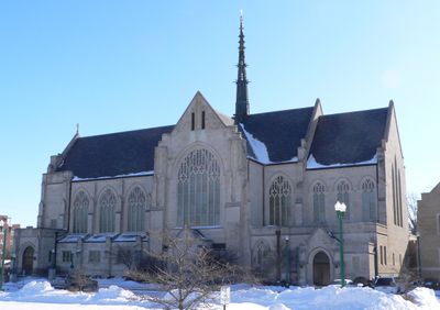 Located at 204 South Cedar Street, the cathedral maintains wheelchair accessibility and contains an electrified four-sided clock tower from 1926.