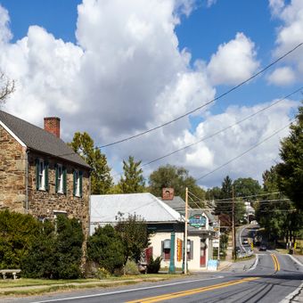 The main road, Maryland State Highway 85, connects visitors to multiple preserved buildings, local shops, and the Frederick Inn Bed and Breakfast.