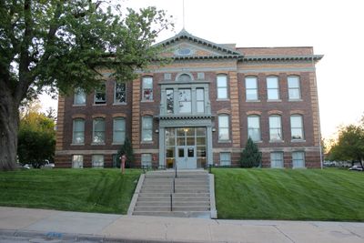 Robbins School is a Classical Revival school building erected in 1910 in South Omaha. The structure displays a central pedimented portico, pilasters, and a Palladian window accented with detailed cornice work throughout its facade.