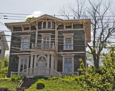 Located on a steep bluff, the residence contains the original pair of front doors that remained stored in the basement for numerous years.