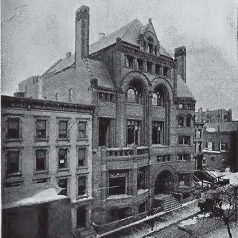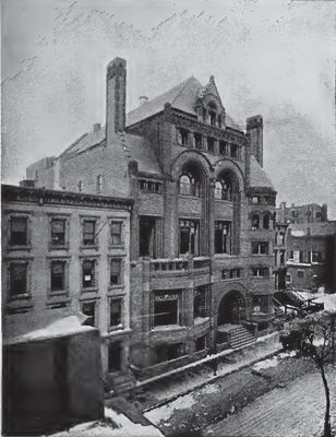 The Germania Club House featured a four-story structure built with light colored brick, terra cotta, brownstone, and measured 60 by 100 feet.